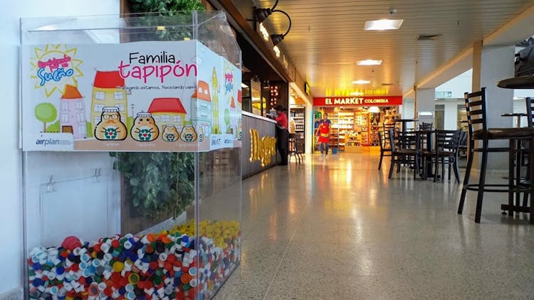 ¿Cómo? Deposita tus tapas plásticas en los contenedores que están ubicados en la sala de abordaje nacional y en la zona de comidas del segundo nivel del Aeropuerto Los Garzones de Montería.