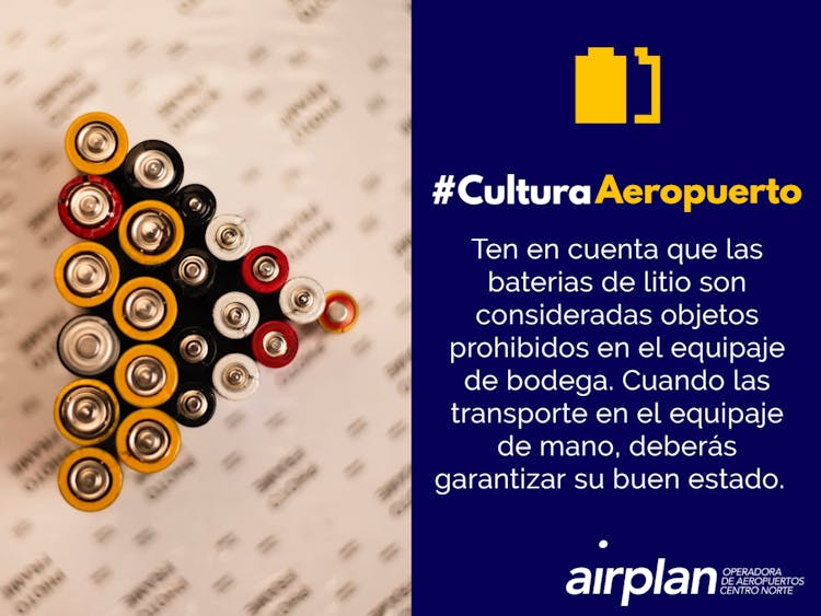 Ten en cuenta que las baterías de litio son consideradas objetos prohibidos en el equipaje de bodega. Mira las siguientes recomendaciones que debes tener en cuenta a la hora de viajar.