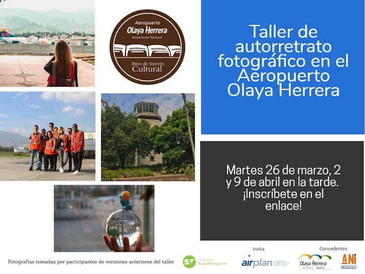 Desde Airplan te invitamos a participar en el taller especial de autorretrato fotográfico en el Aeropuerto Olaya Herrera, Bien de Interés Cultural. Se tratará de tres sesiones en las que compartiremos sobre los diferentes modos de autorretrato que son posibles, reinterpretaremos fotografías antiguas y haremos un recorrido especial por las instalaciones.