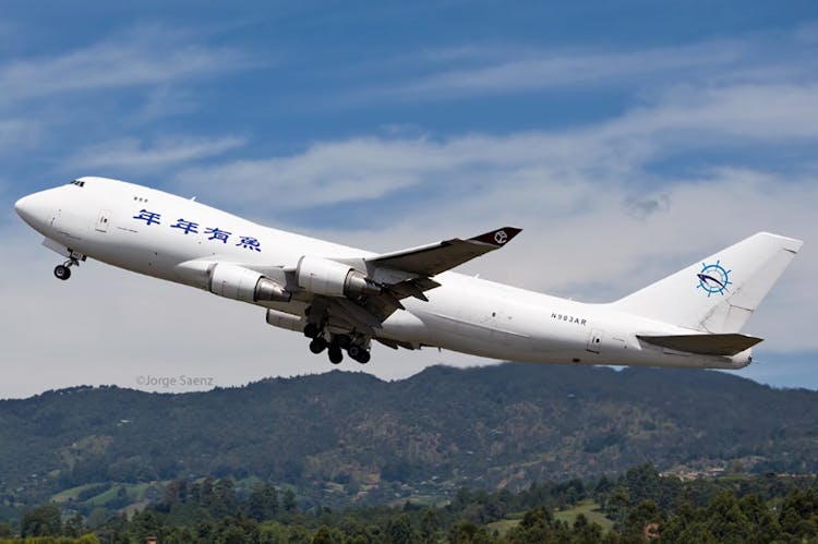 Visitantes que llegan al Aeropuerto Internacional José María Córdova por la flores que conquistarán el corazón de las madres en su día, Boeing 747 de Sky Lease Cargo. Registro de Jorge Sáenz.